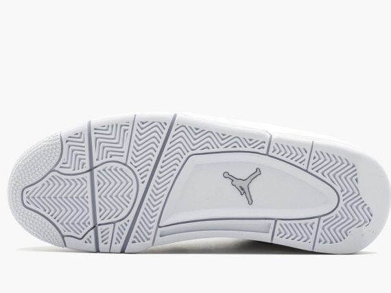 Any good sneaker design should work in White, and the Air Jordan 4 is no exception. Dressed in a clean White, Metallic Silver and Pure Platinum color scheme. This release is completed with « Pure$ » underneath the back tabs, Chrome on the lace tabs and Jumpman heel logo.